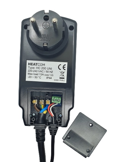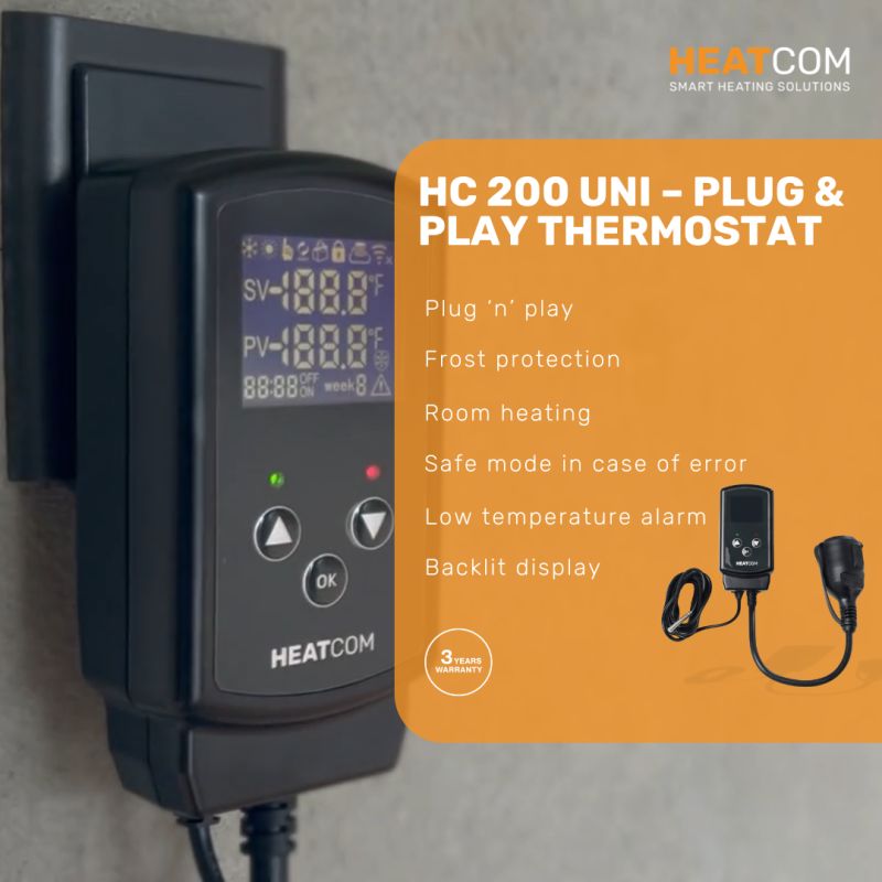 Niiskuskindel termostaat Heatcom HC200 Uni IP44 pistikupesaga- saab kasutada nii külmakaitseks kui ka kütte reguleerimiseks näiteks kasvuhoone, talveaia või veetorude temperatuuri seadistamisel.