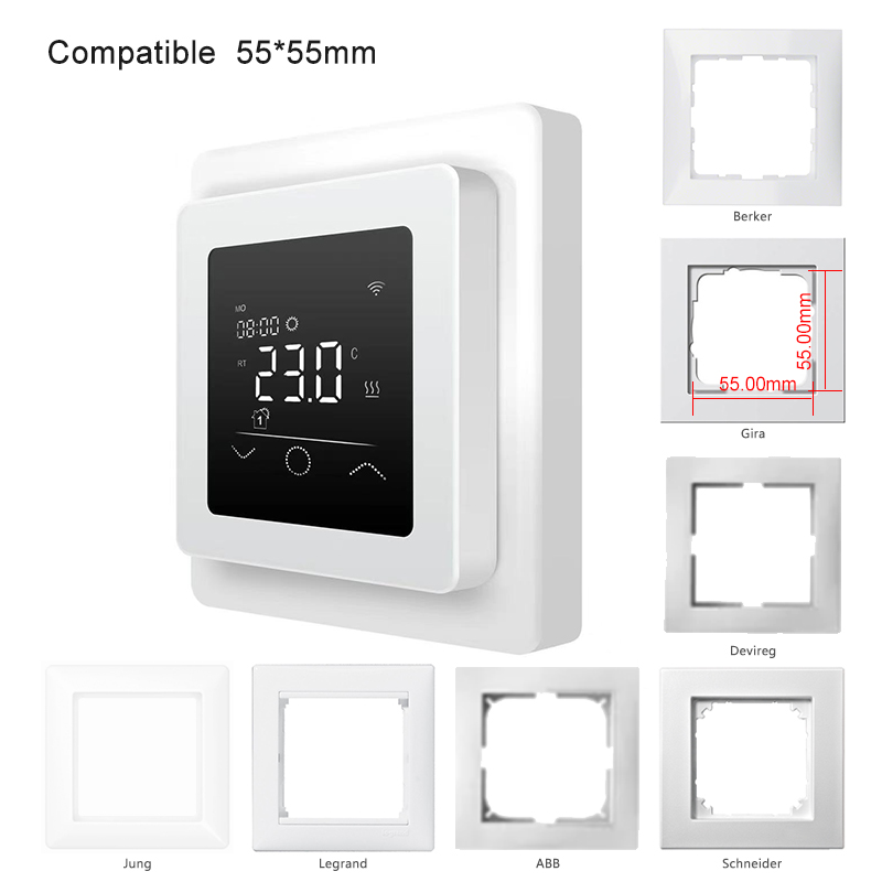 • Wifi termostaat sobitub väga paljude disain raamidega:
