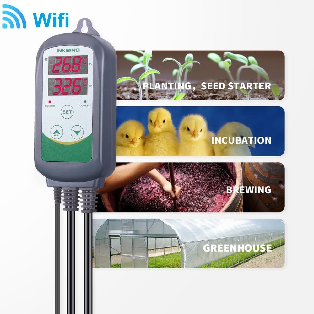 Wifi termostaadi ekraanil on kaks näitu. Ülemine näitab seadistatud temperatuuri ja alumine näit kuvab hetke reaalset mõõdetud temperatuuri. Wifi termostaat pistikupesaga on väga lihtsalt seadistatav. Vajaliku temperatuuri saame valida üles – alla nuppe kasutades. Tänu wifi funktsioonile temperatuuri regulaator reguleerib küttekaabli, radiaatori, kasvuhoone, inkubaatori, akvaariumi, pinnase jne kütteseadme tööd distantsilt nutiseadme abil, sealt kus iganes sa viibid.