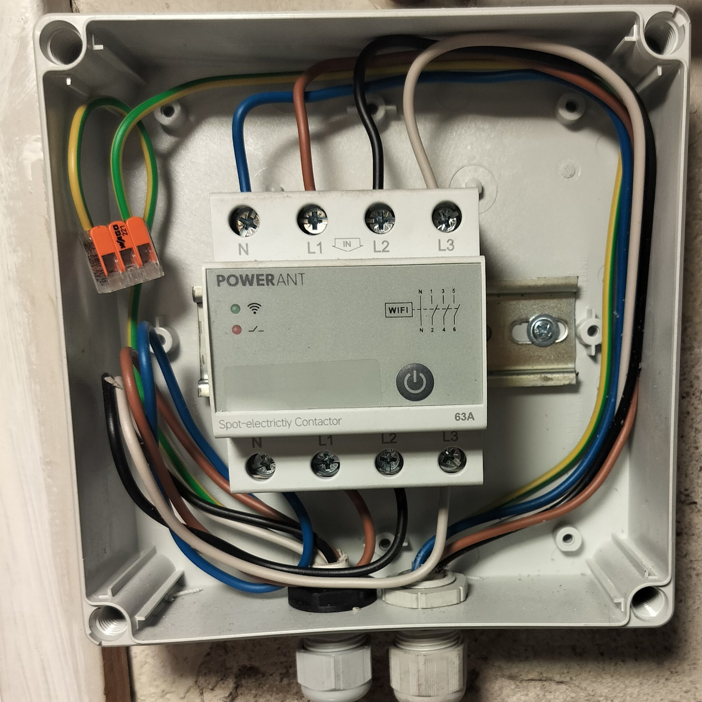 This Powerant smart remote-controlled contactor is designed to react to real-time electricity market prices and is installed directly into your electrical panel. The price-monitoring contactor optimizes electricity usage by activating devices during the cheapest hours. Installation is quick and easy, but it must be carried out by a qualified electrician. Once installed, the WiFi-enabled contactor can be configured and managed without requiring further electrical expertise.
