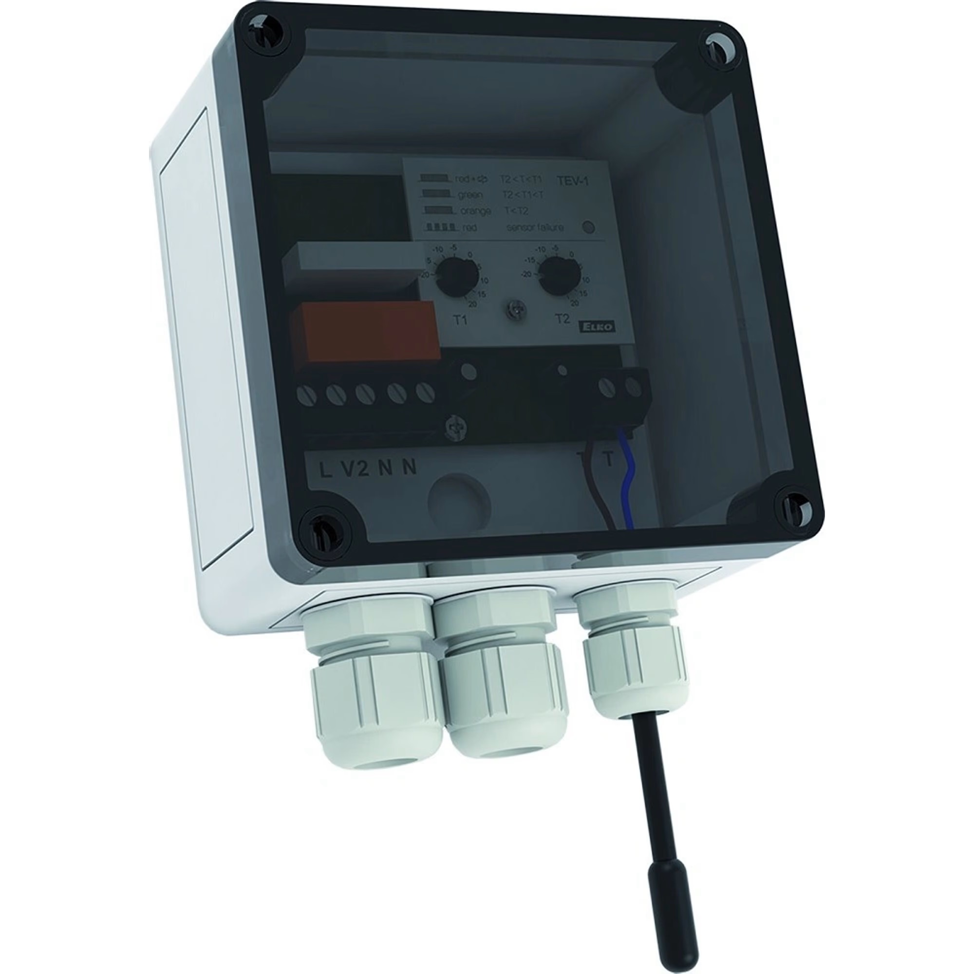 Ränninlämmityksen bimetallitermostaatti Eberle DTR-E 3102 – jään ja lumen sulattamiseen katoilla ja sadevesikouruissa, lämmityskaapeleiden toiminnan ohjaukseen.
