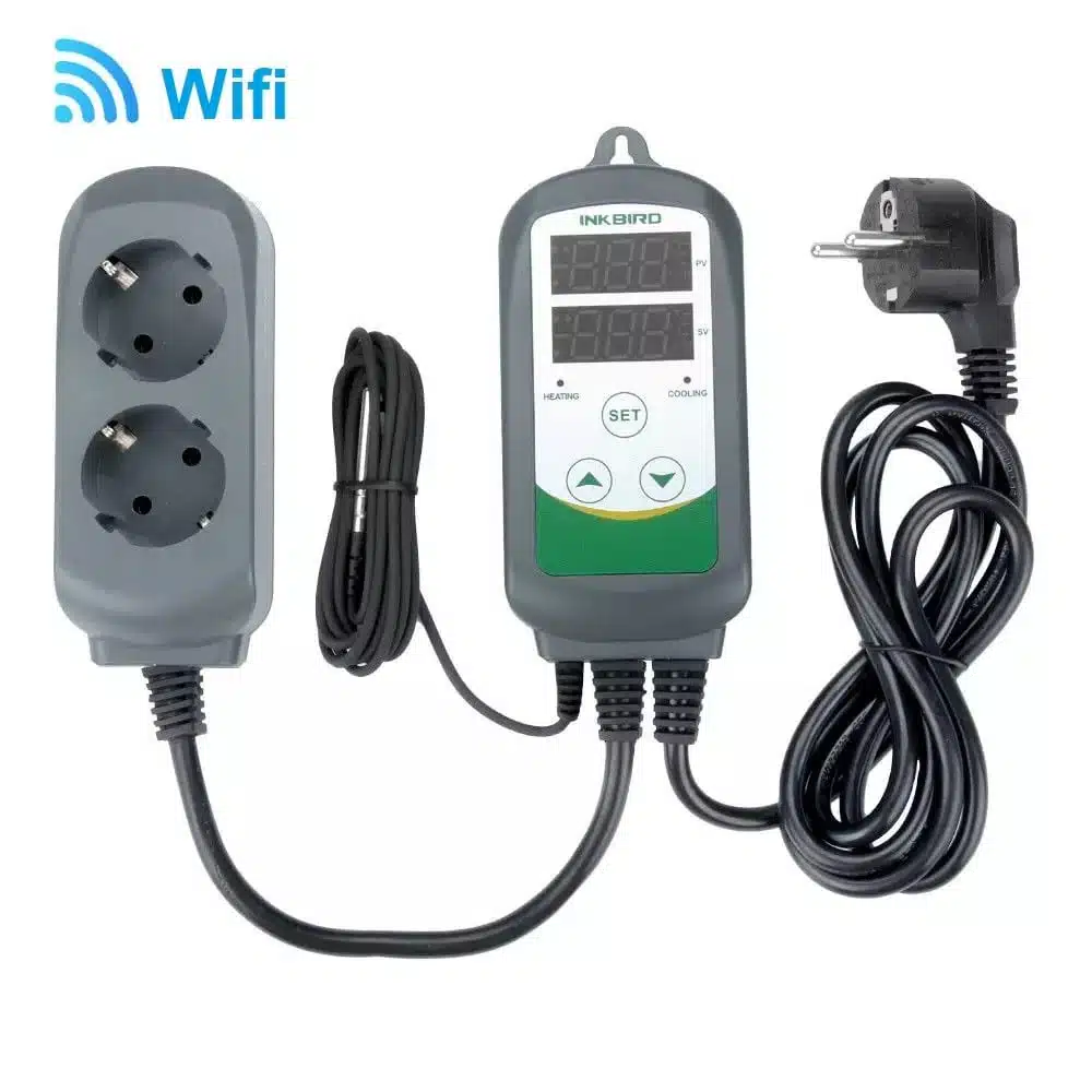 Inkbird ITC-308 WIFI termostaatti pistorasiaan on ominaisuuksiltaan universaali ja varustettu lämpötila anturilla. Wifi termostaatti pistorasiaan on kauko-ohjatava ja soveltuu sekä lämmitys- että jäähdytyslaitteiden lämpötilan säätöön välillä -40℃-100℃