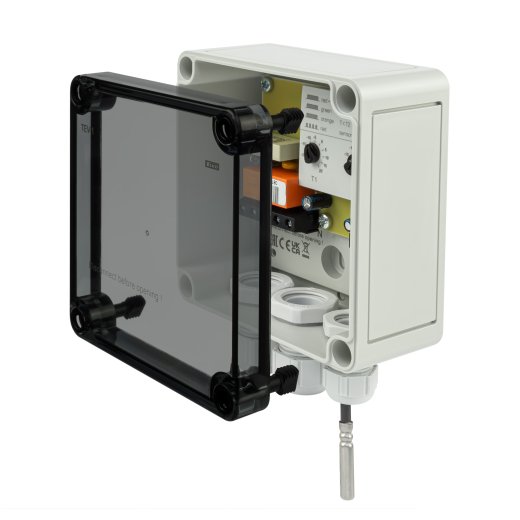Прозрачная крышка прочного корпуса из ABS-пластика позволяет постоянно визуально контролировать состояние контура по двум светодиодным индикаторам, показывающим активный режим работы. Широкий диапазон рабочих температур окружающей среды от –30 °C до +50 °C гарантирует надежную работу электроники даже в самых суровых погодных условиях. Наружный терморегулятор способен напрямую коммутировать нагрузку до 16 А / 3680 Вт либо управлять мощным контактором при проектировании более масштабных промышленных систем.
