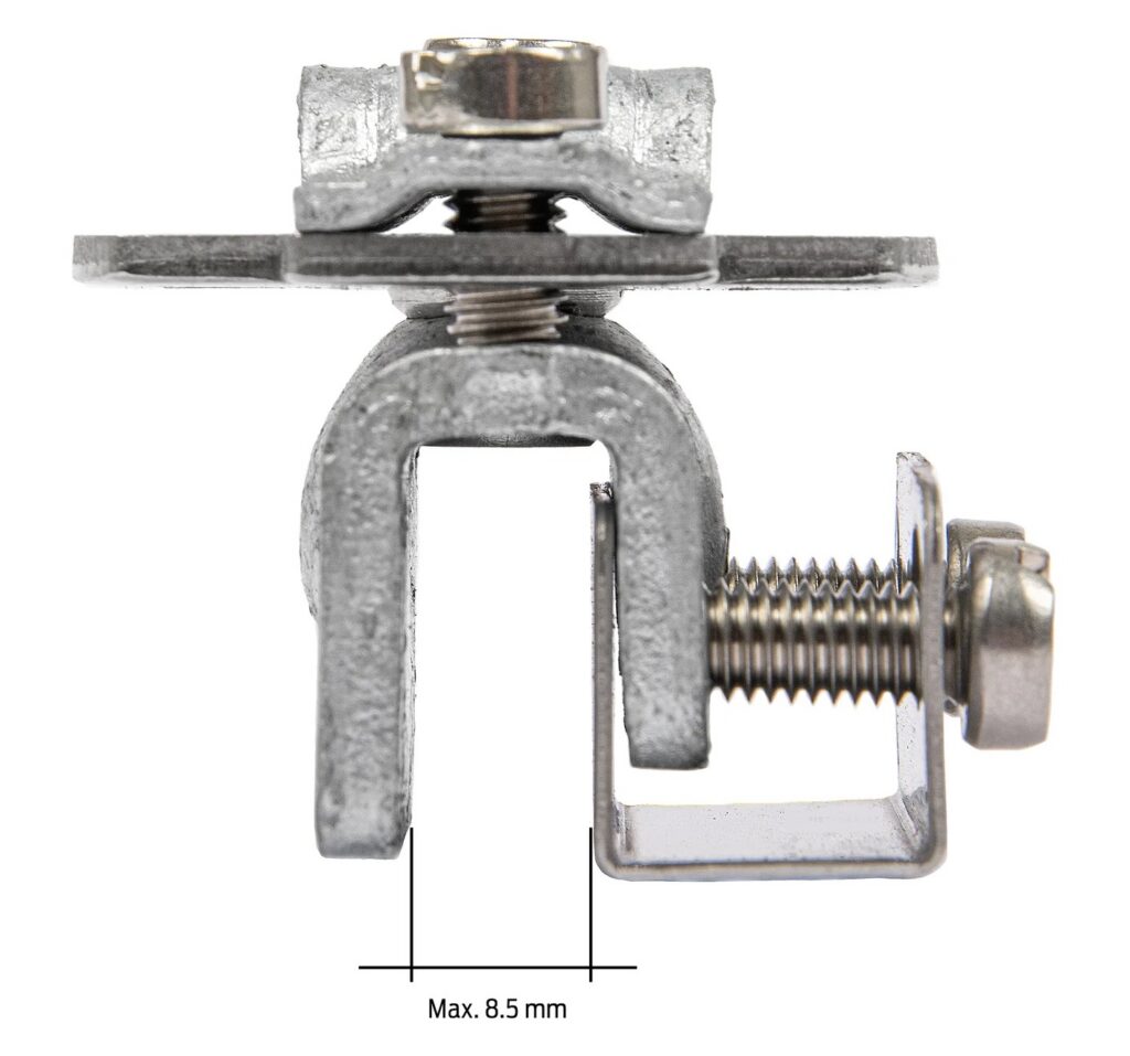 Tugevad kinnituskruvid ja katusepinda kaitsev vaheliist takistavad kruvide tungimist läbi katuse värvi- või tsingikihi. Kinnituse ülaosas olev kaablihoidik on pööratav 90°, mis võimaldab kinnitusklambrit kasutada nii piki- kui ka ristsuunalistes paigaldustes.
