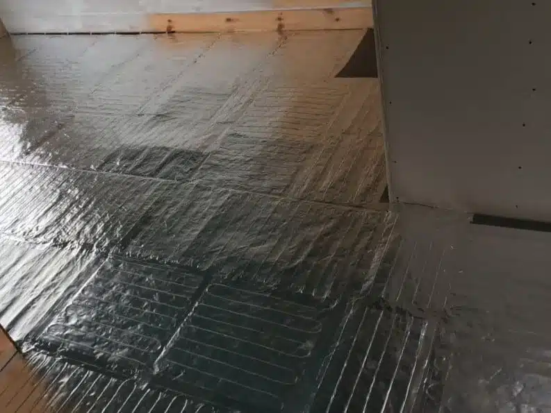 Aluspõranda ebatasasuste leevendamiseks soovitame kindlasti paigaldada 3 mm või 6mm isolatsioonplaat vms. mis tagab ka täiendava soojusisolatsiooni, toimib sammumüra summutajana, kaitseb küttematti põrandast tuleva surve eest ja selle aluskihi sees saab teha väikseid sisselõikeid termostaadi põrandaanduri ja küttematti ühendusjuhtmete paigaldamise jaoks, mis jooksevad põrandast seina äärde ja edasi termostaati. Klaaskiuga tugevdatud alumiinium küttematt jaotab soojust ühtlaselt kogu põranda ulatuses.