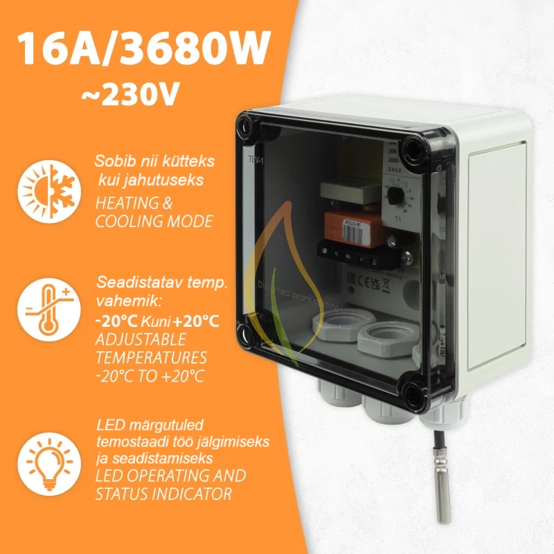 Termostaadi temperatuuriandur on 3 m kaabliga ja saab paigutada kohtadesse, kus on vaja eemalt temperatuuri reguleerida. Temperatuuriandurit võib vajadusel pikendada kuni 50m.